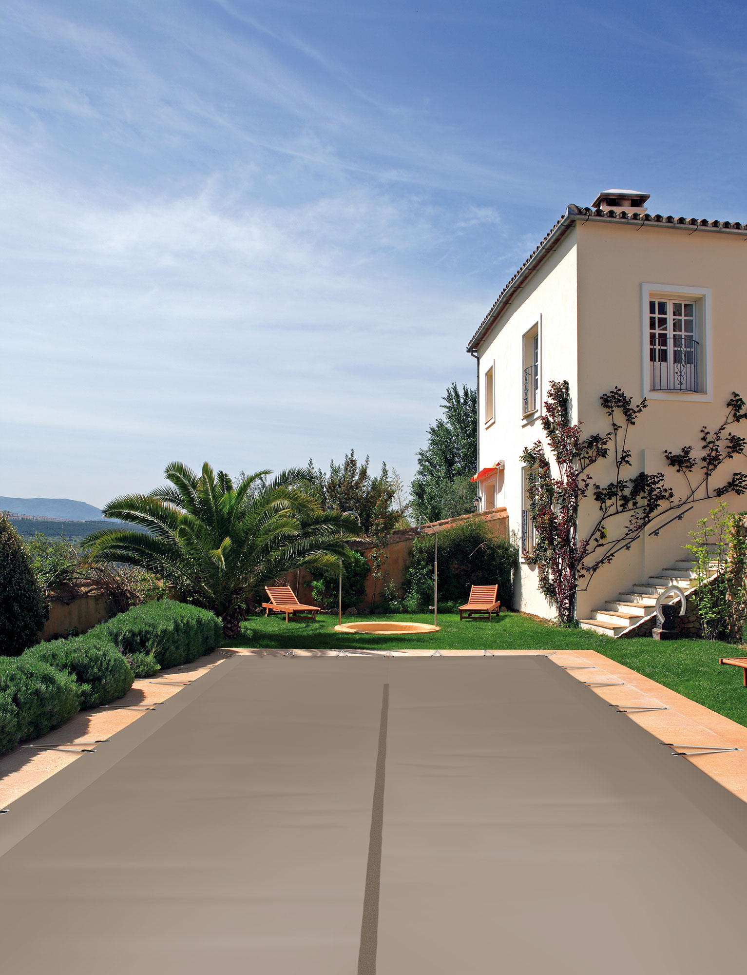 La couverture d’hivernage pour piscine est mise en place en fin de saison.